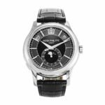 This Patek Philippe Complications Automatic Grey Dial 5205G-010 Replica is a high quality watch from Audemars Piguet. It features an Automatic Movement with a Caliber of 324 S QA LU 24H/206 and a power reserve of 60 hours. It has a 904L Stainless Steel case with a White Gold color and a Sapphire crystal. The bracelet is made of Alligator leather with an adjustable link and a 904L Stainless Steel Tang Clasp in White Gold. The dial is black with stick indices and 904L stainless steel Dauphine hands.