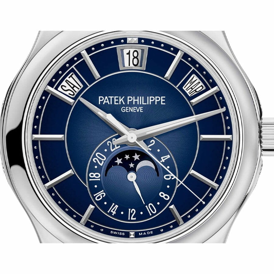 The blue dial has stick indices and hands made of 904L stainless steel. It has a variety of functions. including hours. minutes. seconds. additional 24 hour hand. date. annual calendar. day. month. and moonphase. It is water-resistant up to 30m and comes with a full 2 year international warranty. This watch is a perfect replica of the original. with the same arrangeable serial numbers and cards. font. punto. and finishing for writings and markings. thickness. size. and powerful movement and caliber.