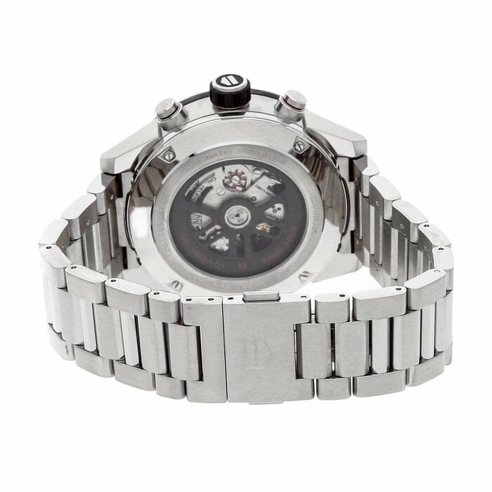 The TAG Heuer Carrera Calibre Heuer 01 Automatic Chronograph CAR2A1W.BA0703 Replica is a striking watch. It features a 904L stainless steel case and bezel. with a black bezel color and a sapphire crystal. The movement is an automatic Calibre Heuer 01 with a 60-hour power reserve and a precision of -3/+3 seconds per day within COSC certification limits. The dial is skeleton with stick indices and stick hands. both made of 904L stainless steel.